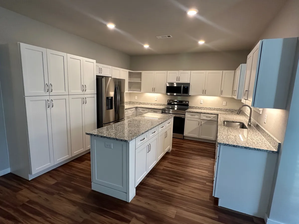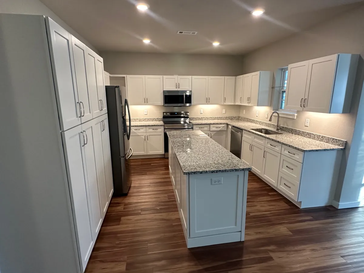 - Kitchen with full-size appliances and pantry